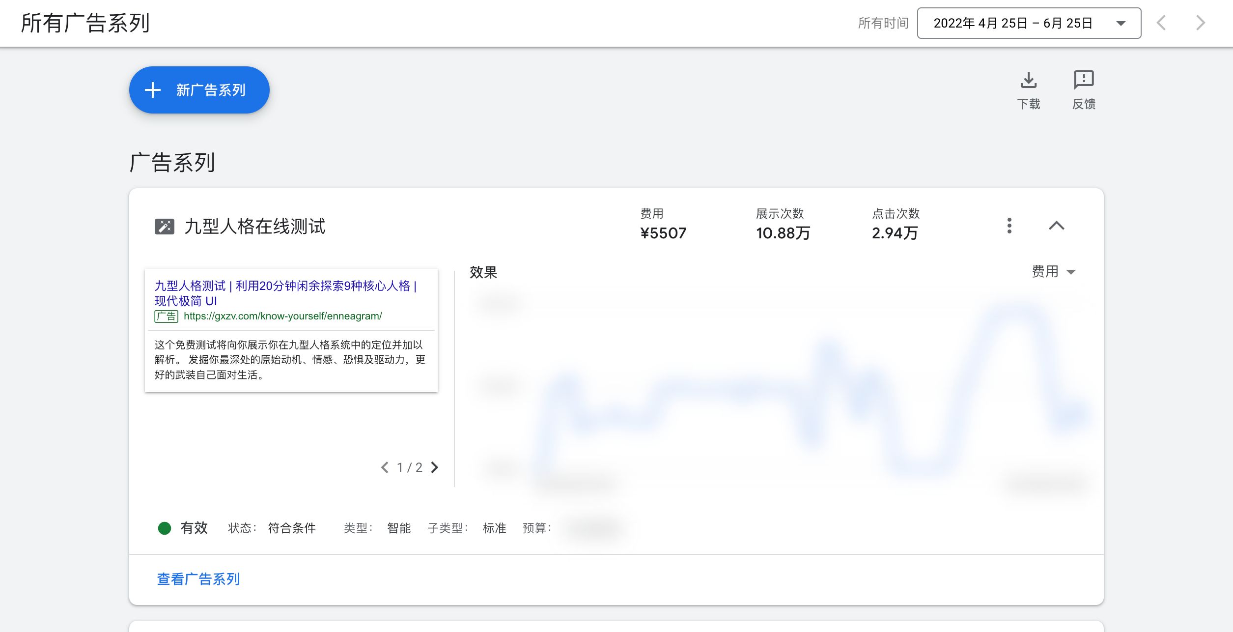 随后,由于当时大火的 MBTI 测试,我开始打算在自己博客上开发一个九型人格的测试及分析项目。我相信在人类历史发展长河中,我们已渐渐开始从物质文明转为精神文明建设,这也是 know-yourself 板块创建的一大缘由。这个项目于 4 月 11 日开始内测,并于 19 日正式上线,也尝试投了 Google Ads,期待让更多的人 know-themself,而后了解作者,妄图以此寻找共鸣及认可。