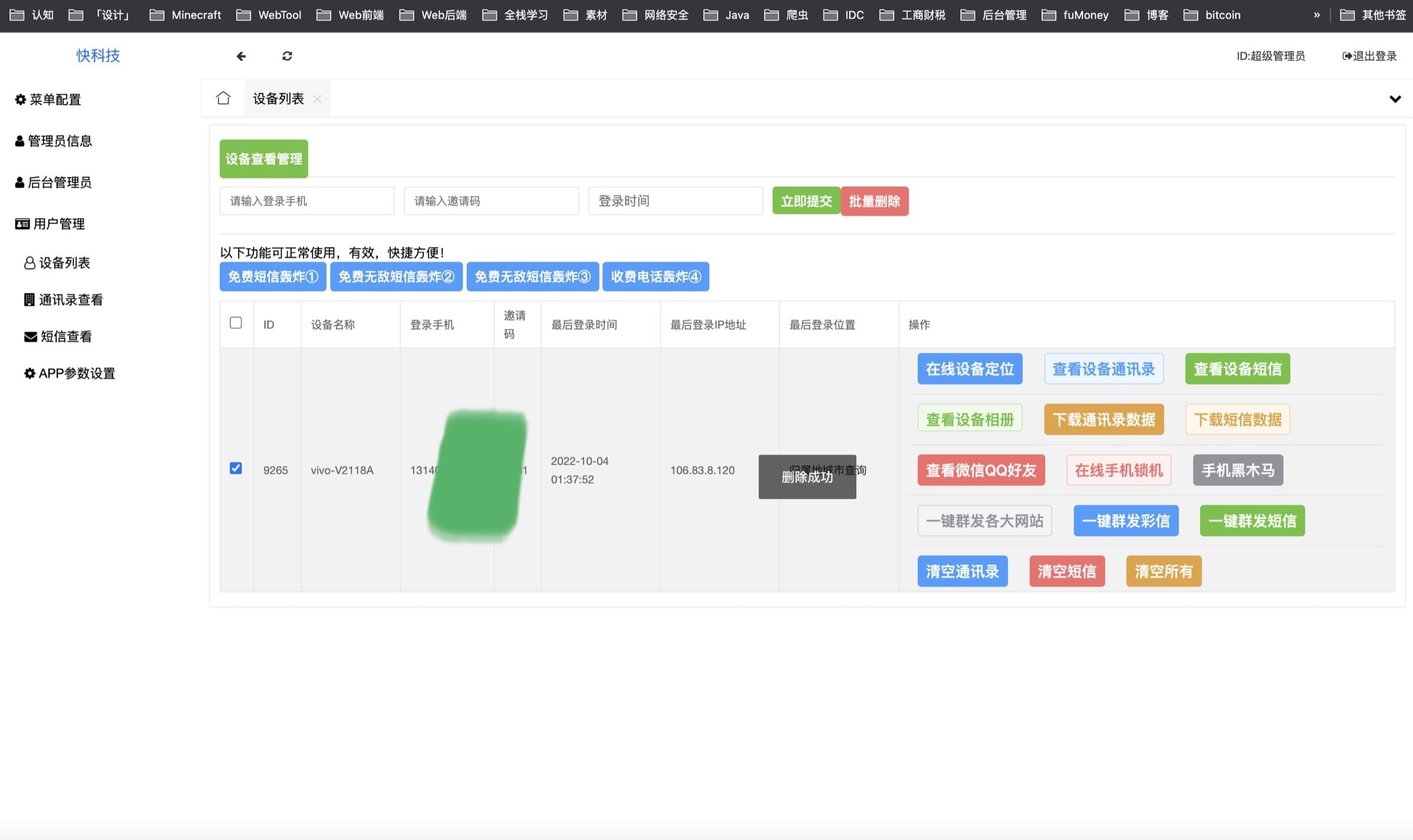 至于后台其他那两千多台设备记录我就没删了,毕竟那些人这次不上当,以后还会在其他事情上上当,刀悬在头上总会有落下来的一天。